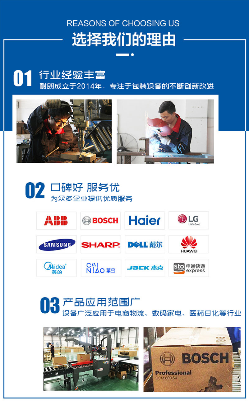 本套机器人码垛系统可适应于化工、饮料、食品、啤酒、塑料、空调等生产企业对纸箱、袋装、罐装、盒装、瓶装等各种形状的成品进行装箱和码垛。操作简单稳定性高。